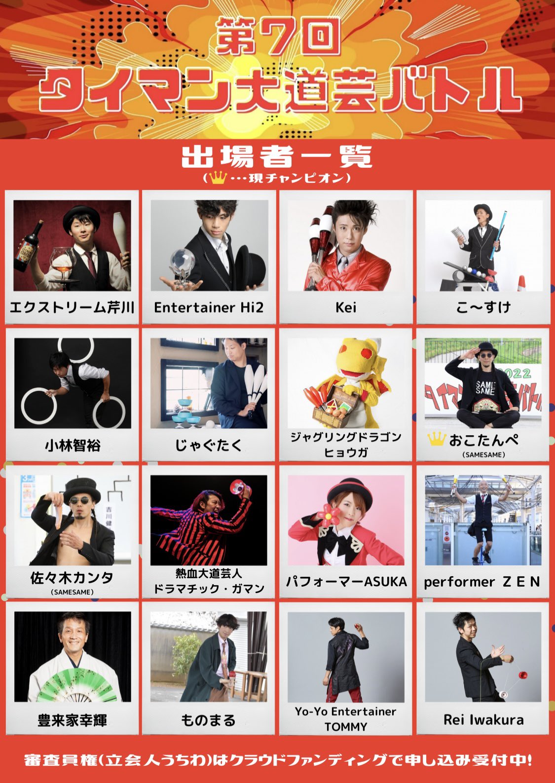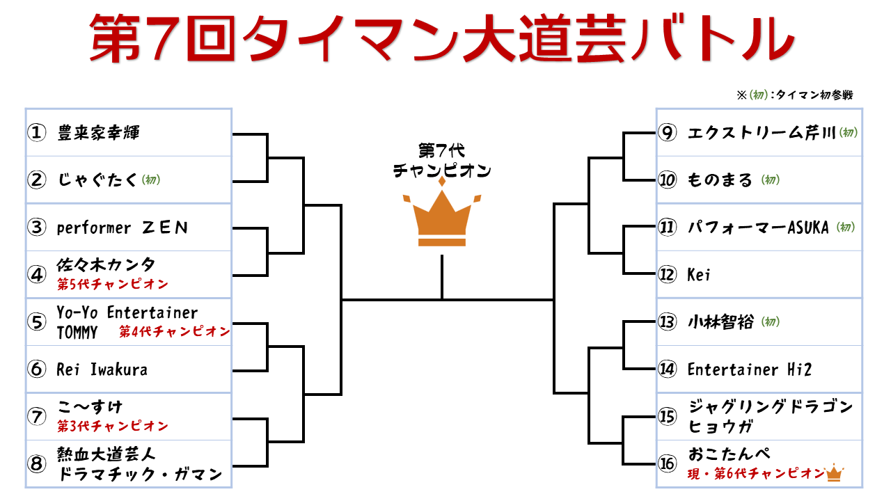 各出場者については出演者情報ページをご確認ください!!