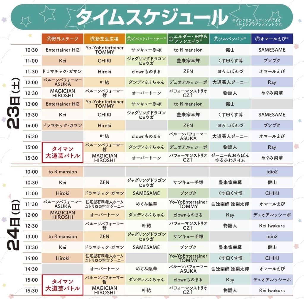モリ芸2022タイムスケジュールです。お楽しみに!